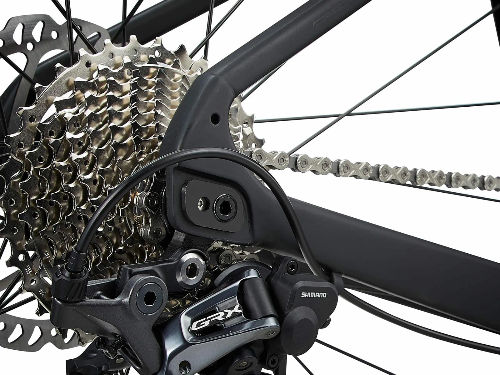 Un flip-chip situé sur la patte arrière permet de régler l’empattement : court pour une maniabilité plus agile ou long pour plus de stabilité sur les routes rugueuses et les graviers. Le réglage long permet d’utiliser des pneus d’une largeur allant jusqu’à 53 mm. Tu peux choisir la tige de selle D-Fuse fournie pour une souplesse maximale ou passer à une tige ronde de 30,9 mm ou à une tige Dropper.
