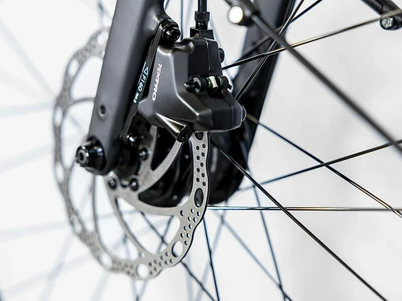 Un cadre léger en aluminium avec câbles internes pour un look épuré et un design Stagger, une fourche légère en carbone, des roues Bontrager Kovee Tubeless Ready 650B avec des pneus larges de 50C pour améliorer les performances en tout-terrain et le confort sur des terrains variés, et un dérailleur Shimano Deore 1×10 facile à utiliser et sans dérailleur. Mais ne t’inquiète pas : avec le large éventail de rapports de la cassette 11-46, tu disposes de plus de vitesses qu’il n’en faut pour les montées vigoureuses et les descentes rapides. En plus, tu reçois une dynamo de moyeu pour alimenter l’éclairage, des freins à disque puissants, des poignées ergonomiques, des garde-boue, une béquille latérale et un porte-bagages arrière compatible MIK.